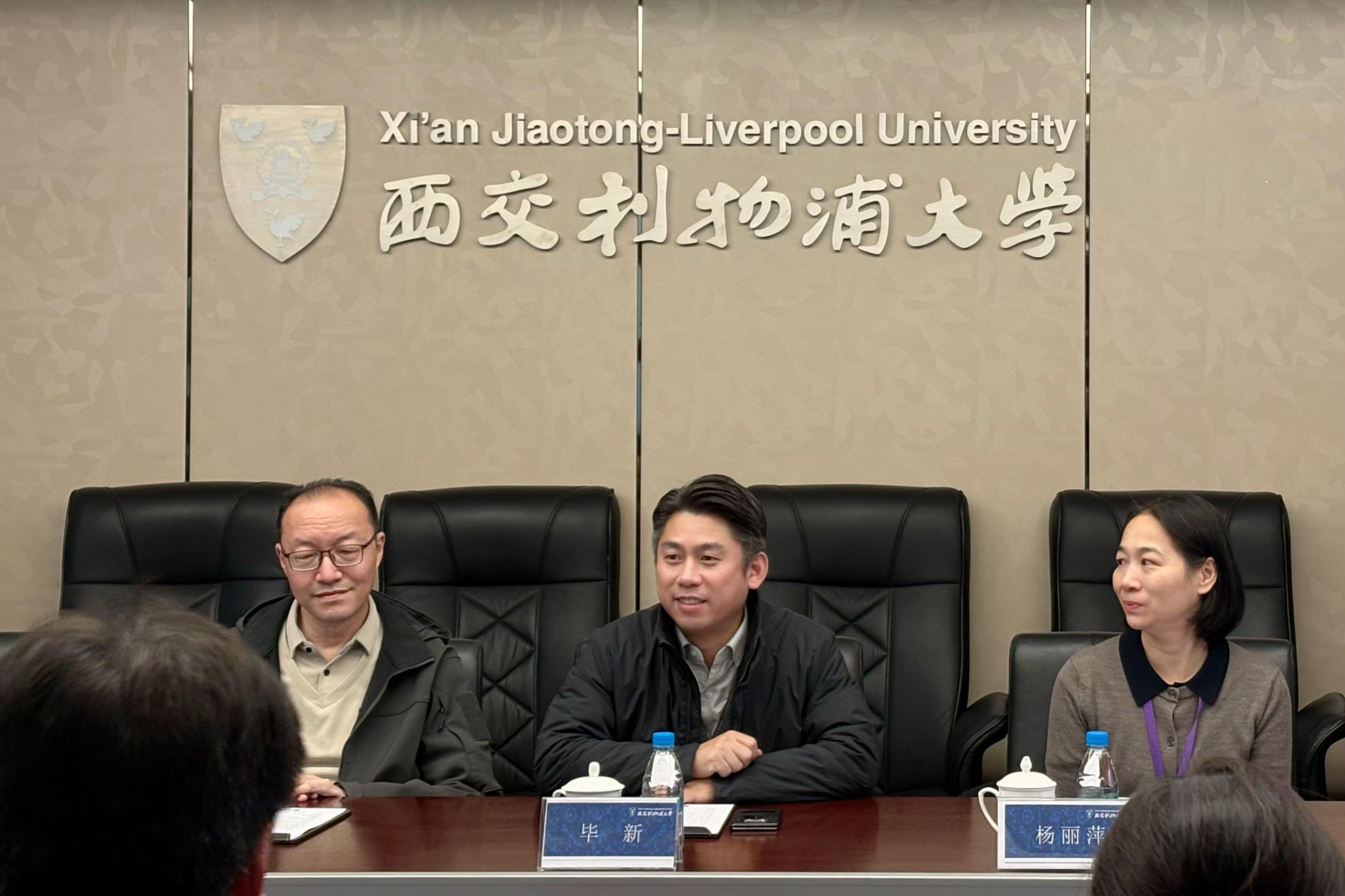 西交利物浦大学(以下简称“西浦”)对此次考察高度重视,由党委副书记、知识与信息中心主任、首席数字官毕新带队,人工智能学院副院长徐德昌,图书馆副馆长、知识产权信息服务中心主任杨丽萍,科研生产力和创新办公室知识产权经理钱晶,知识产权信息服务中心副主任王俊等共同热情接待。校方对各位领导长期以来对学校发展的深切关怀,特别是对知识产权事业建设的悉心指导与大力支持,表达了诚挚的谢意。